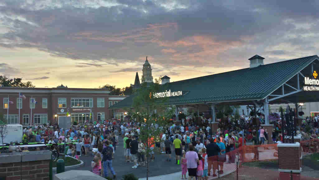 The picture is from a park in Marysville Ohio. It has several names, they are as follows: Community Commons, the Memorial Health Pavilion, and Partners Park.